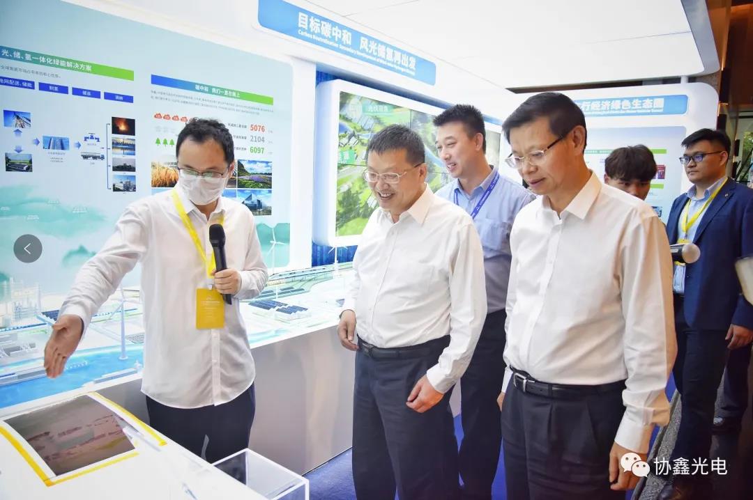 國家能源局局長章建華國際能源變革對話閉門會議間隙考察協鑫展臺